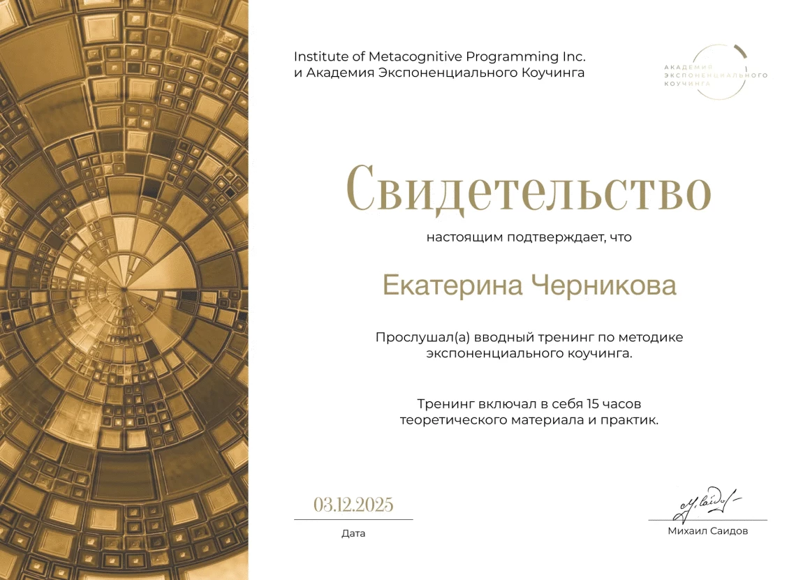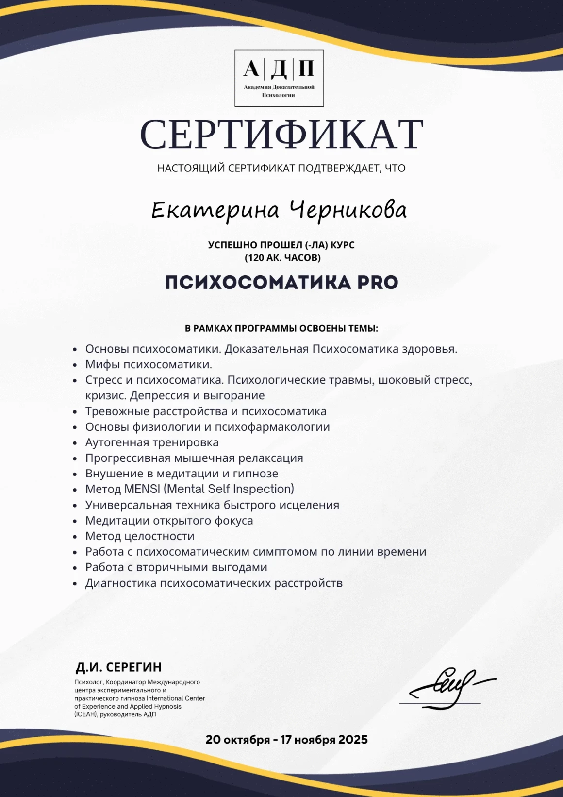 Я Екатерина Черникова, психолог, системный расстановщик, коуч, эксперт по работе с подсознанием.